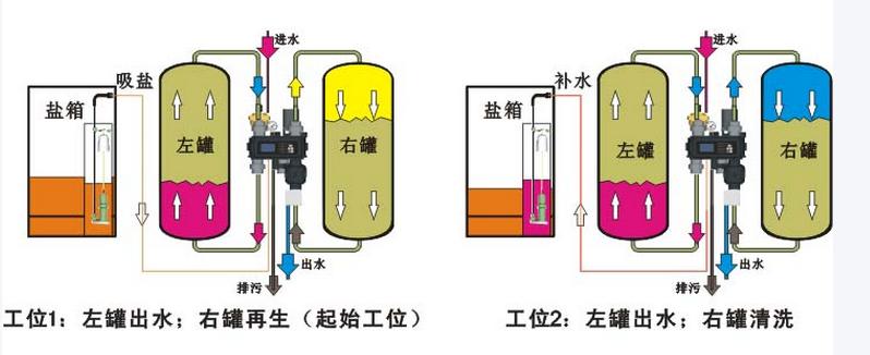 软化水设备是由全自动软水控制器、盐箱、强酸型钠离子阳树脂、树脂罐(一般为不锈钢树脂罐和玻璃钢树脂罐)、以及软水器配件组成。通过水的流量和时间控制的方式发出指令给电磁阀或多路通伺服阀,来完成软化水设备的供水和再生,是工业锅炉、冷却循环水、炼钢、轧钢、大型变压器、民用热水锅炉等场合中应用最为广泛的硬水软化处理设备。